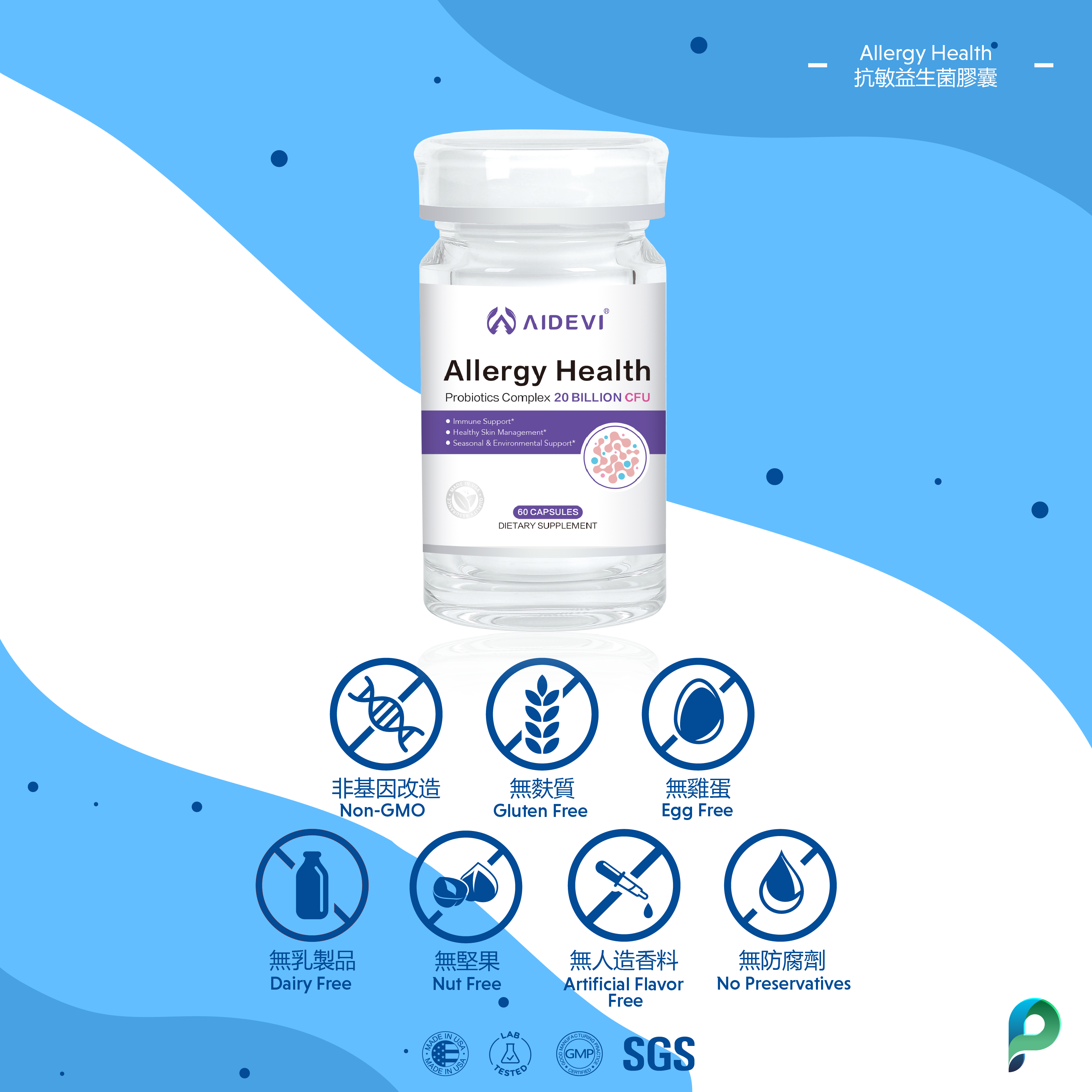 含有200億CFU活性配方,專利4聯益生菌配方,添加益生元成份,提升益生菌效能特別添加黃芪精華、接骨木莓精華、礦物質鋅成分